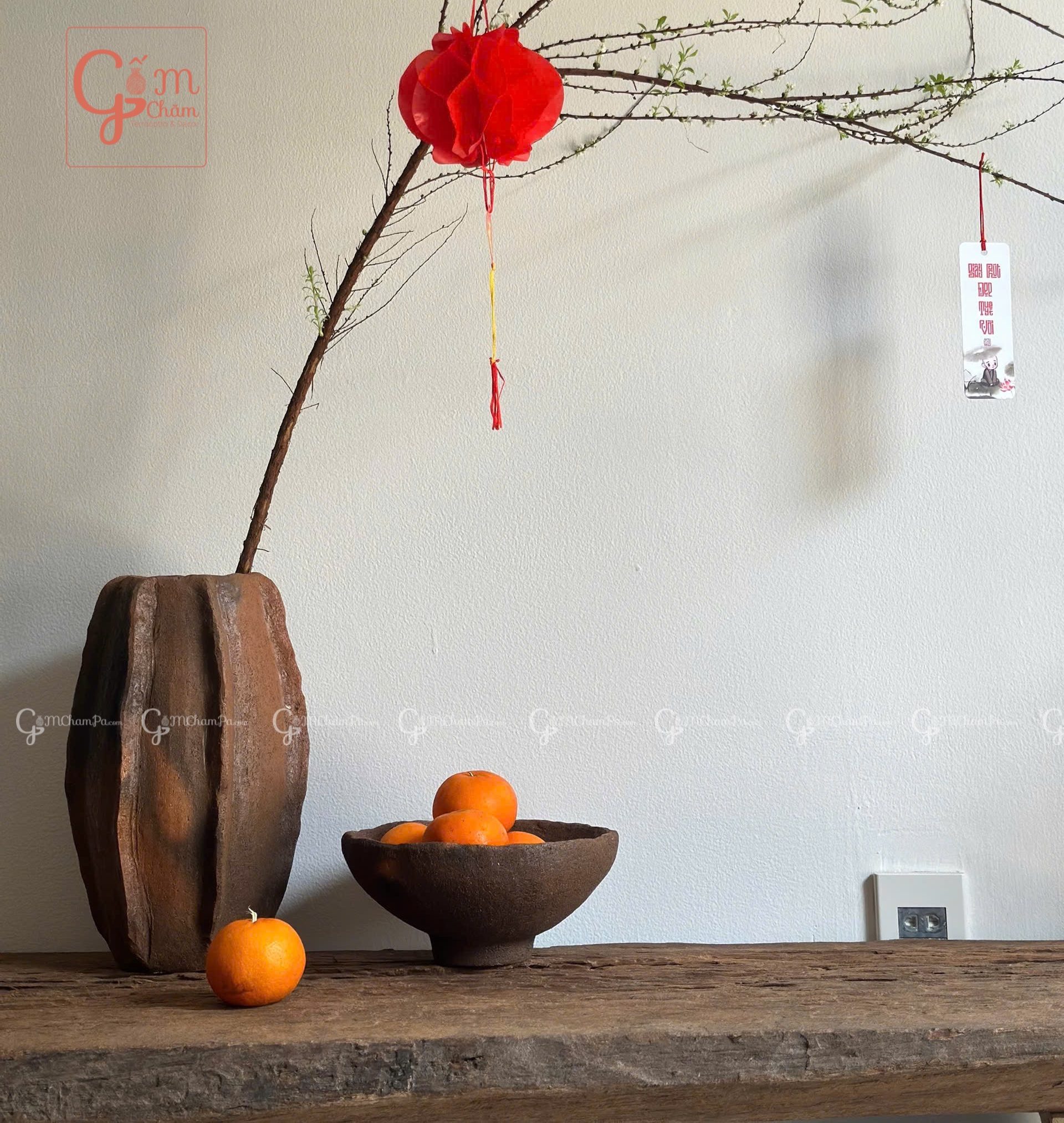 - Bình gốm decor trang trí chất liệu gốm Chăm